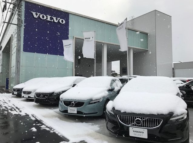 展示車が雪に覆われております