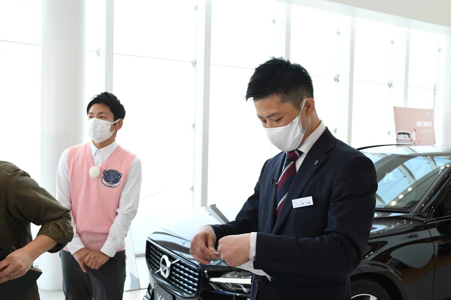 「先生」として出演するのはボルボ・カー山口より日高スタッフ。